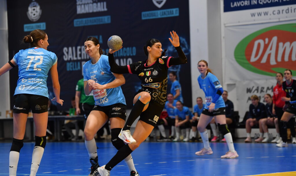 Salerno peraltro, dopo avere sciupato un doppio vantaggio nei minuti conclusivi (28-26 al 55’), tira un doppio sospiro di sollievo. Il primo ancora a partita in corso, con il palo di Wicik e il cronometro che segna 29’40’’, seguito dall’errore a colpo sicuro dai sei metri di Dalla Costa per il match point. Il secondo dai sette metri, dove l’estremo difensore delle ospiti Ciacka – che già nei 60’ aveva neutralizzato quattro rigori – ipnotizza Andriichuk sulla prima conclusione. La Jomi si aggrappa alla parata provvidenziale di Piantini, che apre al pari di Gomez (32-32) per andare ad oltranza. Nel dentro-fuori, all’ultimo respiro, Lauretti Matos segna, Zych si ferma contro il palo. Può esplodere la gioia: Salerno agli ottavi di finale.
