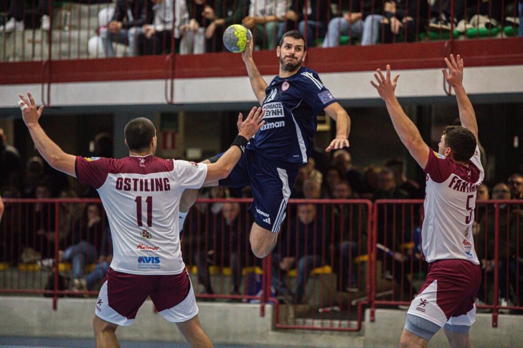 Nella notte del Pala Tacca il Cassano Magnago non riesce nell’impresa di ribaltare il -5 contro i greci dell’Olympiacos nella serata che riportava in Italia, da avversari, il tecnico degli ellenici Riccardo Trillini, il suo vice Sergio Palazzi e in campo i volti noti di Luciano Scaramelli (ex Conversano) e di Tomas Cañete (ex Siracusa e Brixen). L’Olympiacos mette da subito le cose in chiaro con un parziale di 6-0 e una difesa asfissiante sul centrale azzurro Giacomo Savini, inevitabilmente attenzionato speciale nell’attacco amaranto. Il 16-10 su cui si va all’intervallo ha di fatto già scritto l’esito del doppio confronto, ma Cassano Magnago ha il merito di onorare il suo pubblico e l’impegno europeo con una seconda metà di gara volitiva, con il piede sull’acceleratore. Di Adamo il 18-14 che al 47′ riduce le distanze ed è sempre il mancino di origini siciliane a siglare il 26-24, momento di maggiore vicinanza tra le due squadre. Finisce 29-26 e con un complessivo divario di otto gol tra andata e ritorno. Al Tacca protagonista di serata Tomas Cañete, autore di nove reti e migliore marcatore dell’incontro.