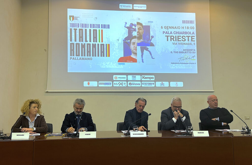 A Trieste cresce l’attesa da pallamano azzurra. Questa mattina (martedì) Sala Predonzani, al Palazzo della Regione Autonoma Friuli Venezia Giulia, ha ospitato la conferenza stampa di presentazione del Trofeo Friuli Venezia Giulia, amichevole internazionale tra Italia e Romania. Il match è parte del programma di avvicinamento degli azzurri agli EHF EURO 2026, dove la Nazionale tornerà dopo 28 anni con debutto fissato il 16 gennaio contro l’Islanda a Kristianstad (Svezia).