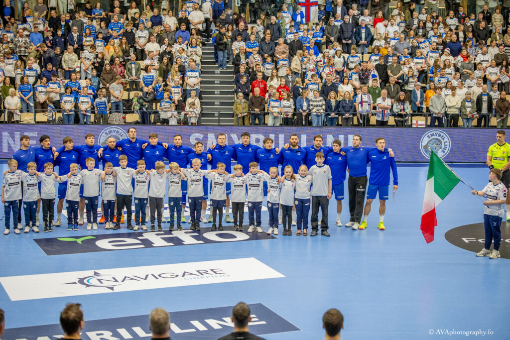 L’Italia sciupa in fase di costruzione e nella ripresa apre al massimo vantaggio faroese. Illuminati dalle giocate del 20enne Olì Mittun, sue sei reti, i padroni di casa trovano al 38’ il 26-20. Letale, in contropiede e dai sette metri, il mancino West av Teigum, top scorer dell’incontro con otto reti. Ma l’Italia gradualmente sale di tono, prende le misure sull’extra-player faroese e trova parate preziose in un Ebner in crescendo rispetto ad un primo tempo opaco. Partita riaperta sul 28-27. Per il pari bisogna attendere ancora qualche istante, ma Mengon sul 29-29 rimette le cose in ordine. La partita cambia direzione. Nel mezzo gli azzurri affondano il colpo, fanno male (32-30) e tengono in difesa. Sopra 35-34, la Nazionale difende l’ultimo possesso. Di Leo Prantner il sigillo conclusivo.