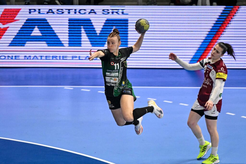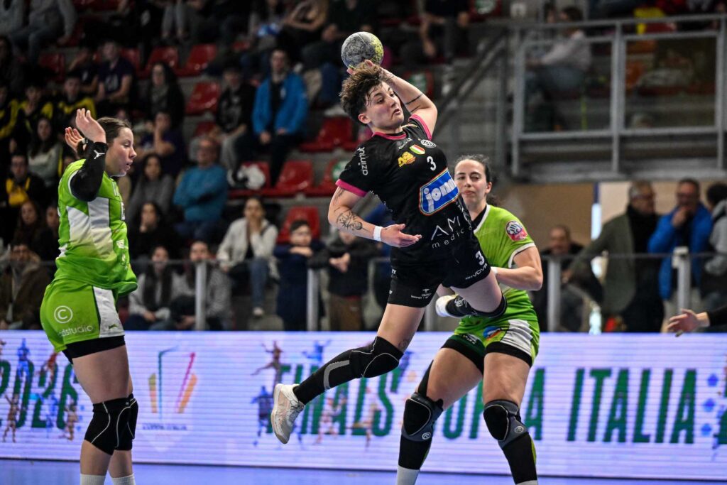 SALERNO – BRIXEN 34-25. La Jomi Salerno torna in finale di Coppa Italia. Per la seconda stagione consecutiva le campane, campionesse d’Italia in carica, si guadagnano un posto nell’atto conclusivo del torneo più atteso della stagione. Prova solida della formazione guidata dal tecnico Adrian Chirut contro un Brixen Südtirol battuto 34-25 (p.t. 19-13) ma mai arrendevole nel corso del match. Seppure con meno rotazioni su cui contare – tra le campane debuttava anche la mancina montenegrina Đurđina Malović – la formazione di Hübi Nössing gioca una partita di carattere, rimanendo sulla scia della Jomi fino al 19-16 toccato dopo 35’, frutto di un break di 3-0. Salerno ha tanti cambi e tanta esperienza, ma anche il brio delle giovani Margherita Danti fra i pali e Asia Mangone sulla linea dei terzini. La mancina azzurra, classe 2005, chiuderà con sei reti nella serata del Play Hall al pari del capitano della Nazionale Ilaria Dalla Costa. Con il correre dei minuti, Salerno fa valere la profondità di roster e scappa via. Allungo sul 25-18 al 44’. Nemmeno il cartellino rosso per Andriichuk – colpo al volto di Habicher – fa vacillare la Jomi. Il finale allarga oltremodo il punteggio: il +9 è troppo severo per Brixen, ma Salerno va in finale con pieno merito e, un anno dopo, proverà a riportare in Campania un trofeo che le manca dal 2020.