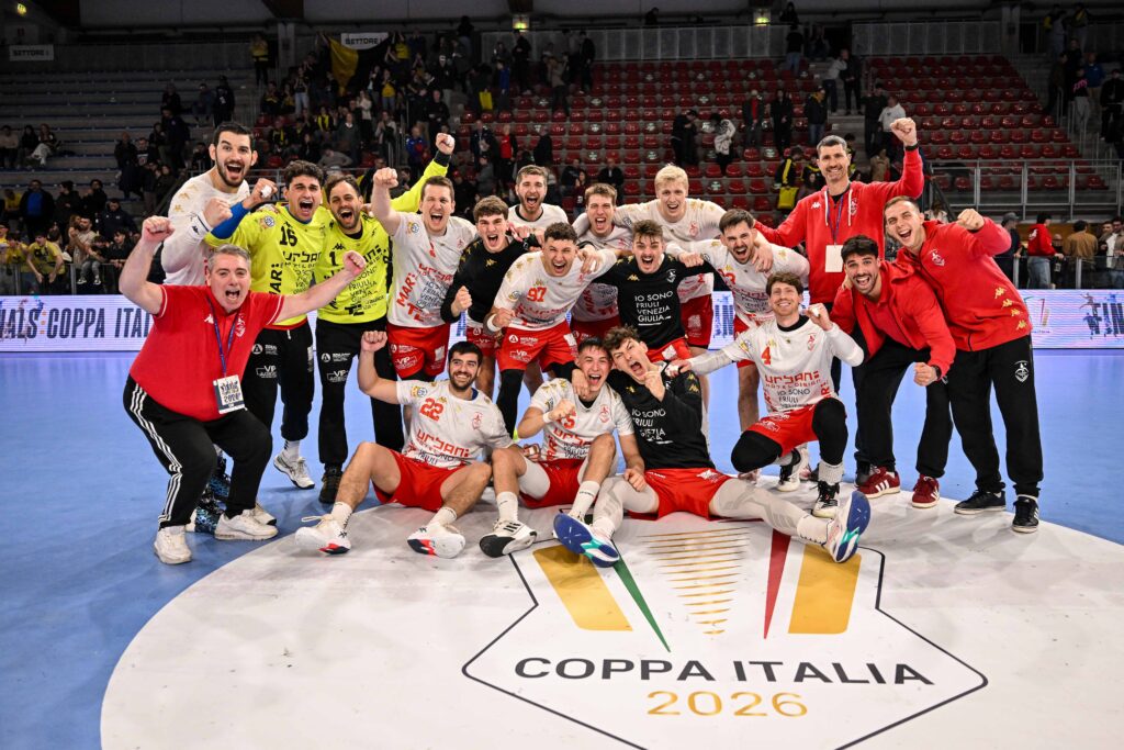 TRIESTE – PRESSANO 31-29 (d.t.r.). A 19 anni dall’ultima volta, Trieste torna in finale di Coppa Italia: è una storia dolcissima per una squadra che incarna la storia della pallamano italiana ed è risalita dalla Serie A Silver proprio quest’anno. Servono i tiri dai sette metri, dopo 60′ sempre incerti e chiusi sul 26-26, per risolvere il rebus nella notte del Play Hall. E pensare che Trieste avrebbe la palla match allo scadere, col giovane Pietro Lo Duca che però spedisce fuori. Poco male, perché i giuliani trovano in un altro prodotto del vivaio, Thomas Postogna, l’uomo-partita con la parata decisiva che instraderà la serie. Il gol dell’apoteosi passa per le mani di Lucas Hubert, MVP della serata. Al Pressano l’onore delle armi per una prestazione maiuscola e una Finals che dà l’impressione di potere rilanciare le ambizioni dei gialloneri in campionato.