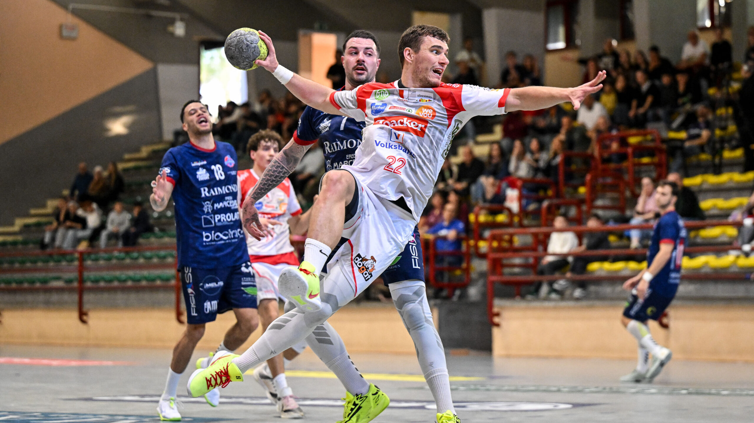 Allo Sparer Eppan non basta una prova coraggiosa, con oltre mezz’ora in vantaggio, per mettersi alle spalle l’ostacolo Metelli Cologne e muovere la classifica. I lombardi di Davide Campana vincono 31-28 (p.t. 16-17), mentre per i Leoni altoatesini la classifica si fa compromettente: il campionato concede ulteriori otto punti per i quali giocare, ma il ritardo di Oberrauch e compagni sulla penultima posizione resta di sei lunghezze. Cologne intanto muove un ulteriore passo in avanti, sale a 21 punti con un’altra serata da trascinatore assoluto di Marko Knezevic: 15 reti per l’incontenibile centrale serbo, capace di normalizzare anche le 10 reti di Alberto Lollo sul versante opposto. Toccato il pari sul 18-18, la Metelli troverà nella ripresa la zampata decisiva (24-21 al 45’, 31-27 al 59’) per trovare due punti che affievoliscono le speranze di salvezza dell’Eppan.